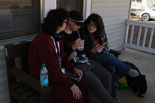 Avery Hoda (right) talking with his friends Graham Wilson (middle) and Rishia Francis (left).