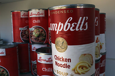A student worker restocking cans.